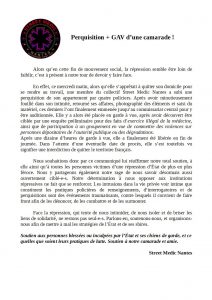 garde, et ce quelles que soient leurs pratiques de lutte. Soutien à